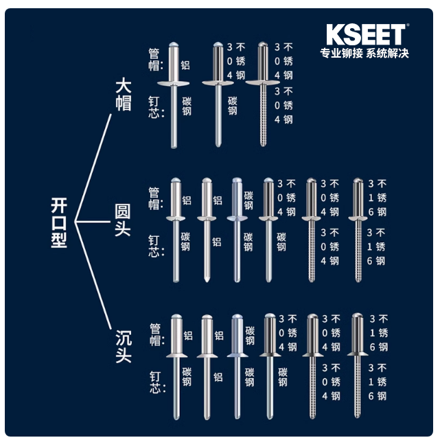 抽芯鉚釘是一種機(jī)械緊固件,可從工件的單面完成鉚接,又稱盲鉚釘,拉釘。以下是有關(guān)選擇適合的鉚釘產(chǎn)品時(shí)具體信息的說明,僅用于一般參考。